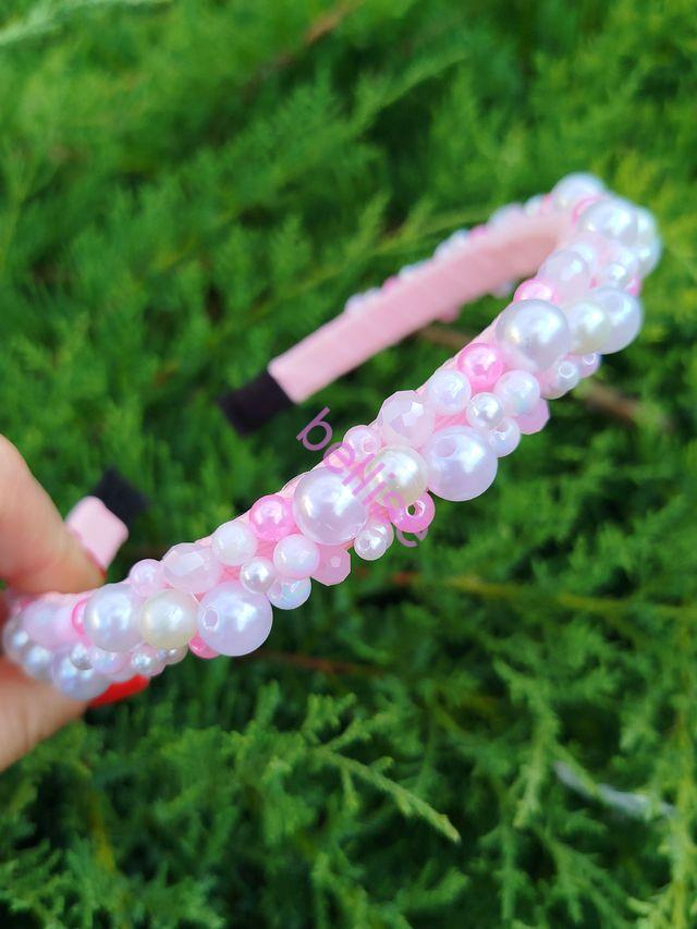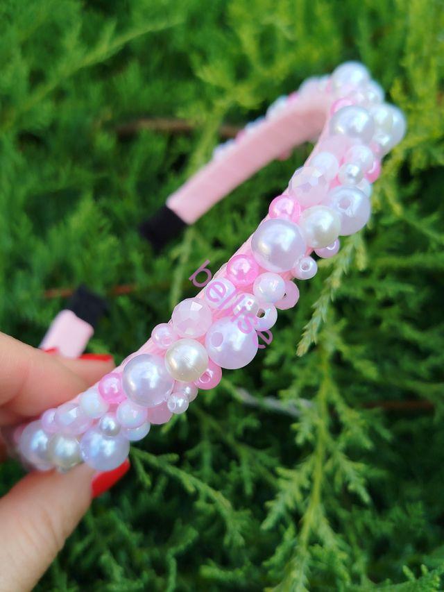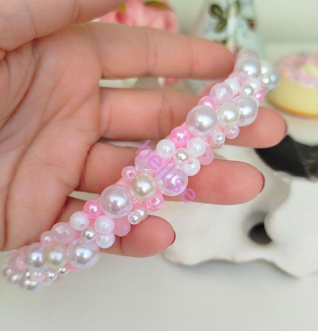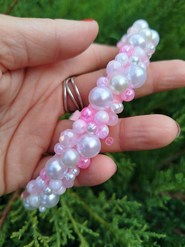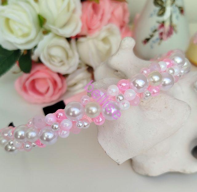 Perličkovo-koráliková čelenka v bielo-ružovej kombinácii.